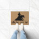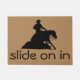 Esta esteira bem-vinda inteligente pertence na fazenda controlando do cavalo certamente. Caracteriza uma imagem da silhueta do clipart de um vaqueiro que monta um cavalo controlando que vem a uma parada deslizante. As palavras na esteira lida "deslizam sobre em".