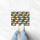 Esta porta tem um design geométrico de diamantes de cor clara que se sobrepõem num campo de preto.