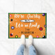 Decoração do tema do Dia de as Bruxas engraçado. Fundo laranja com borda verde e negra. Somos Quirky e Kooky está escrito em branco. Inserir o nome da família na tipografia a cores pretas. Sítios brancos de aranha brancos e círculos geométricos coloridos. Cotação original e Design de Trabalho de arte por TamiraZDesign.