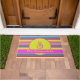 Faça a sua entrada fazer uma entrada! Esta porta listrada de multicores brilhante diz bem-vinda de uma forma vibrante. Personalizado com o seu monograma inicial em caracteres curvados, também apresenta o seu nome numa faixa ampla. Listras coloridas em pinks, laranja, vermelhos, verdes, e uma vibrante declaração maximalista moderna de blues.
