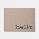 Citações modernas do humor do hipster da pia batismal da tipografia do olá! bonito, engraçado, simples, moderno olá! em um doormat chique rústico da juta de serapilheira do falso.