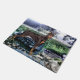 Meu lindo doberman, parado perto de um riacho, é perfeito para amantes de cachorro e dobie. Trabalho de arte de fundo por Artista Desviante, annequins. Doberman por Sally Lannier/Painted Dreams Designs