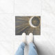 Esta design estética magnífica, mística, solar e lua crescente mandala universo é perfeita para decoração domiciliar, visto cotidiano ou eventos especiais encantados. Um bonito e caprichoso design de sol dourado e mandala da lua, com flores e folhas de rabisco, estrelas, pontos, diamantes, círculos, triângulos e formas geométricas em escala de sereia, com uma lua brilhante palco crescente, uma estrela da flor da mandala, feita com folha de ouro falsa, em uma nebulosa de cinzas escuras, estrelas de galáxias e um fundo gradiente de cinza.