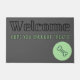 Este moderno tapete ao ar livre com as palavras Bem-vindos - Espero que tenham trazido guloseimas, em preto e verde moderno e um desenho de ossos de cães. Este medicamento é perfeito para o amante do cão ou um presente para uma pessoa que tem um cão ou ama cães.