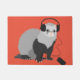 Esteira de porta customizável da doninha do divertimento para um melómano que igualmente ame doninhas. Características deste design da doninha do musical uma ilustração do vetor de uma doninha macia bonito que veste fones de ouvido grandes e que escuta suas canções favoritas em seu próprio telefone. Esta esteira de porta do divertimento igualmente fará um grande presente para um músico que tenha uma doninha do animal de estimação.