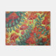 a esteira bem-vinda do cogumelo alaranjado bonito tem flores vermelhas, videiras verdes e folhas em um fundo amarelo. Esta pintura da natureza faz uma esteira bem-vinda lunática de relaxamento.