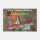 Um laboratório assustador, a casa do cientista louco. Este doormat original pode ser personalizado para qualquer um que ama decorar para o Dia das Bruxas. Arte original do vetor pela mistura variada de coruja de noite, c.2015.