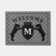 Doormat bonito que caracteriza as silhuetas do Schnauzer diminuto. Cor customizável e textos do fundo. Presente perfeito para o amante do cão ou o proprietário do Schnauzer.