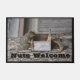 Um doormat que caracteriza uma foto de dois esquilos e das palavras dos "boa vinda loucos."