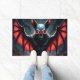 Dê aos seus visitantes um susto com este tapete assustador! Apresentando um monstruoso morcego demônio com uma face craniana e olhos vermelhos brilhantes que emergem da terra. Perfeito para fãs de decoração horrorosa e uma recepção de Halloween verdadeiramente assustadora.