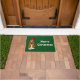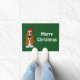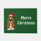 Basset Hound engraçado adorável que veste um doormat original do Natal da arte do chapéu vermelho de Papai Noel.