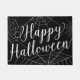 Cumprimente seus convidados do Dia das Bruxas e engane-os ou treaters com este doormat festivo! Caracterizando um roteiro moderno "o Dia das Bruxas feliz" cercado por Web de aranha, é uma grande adição à decoração do Dia das Bruxas da sua casa! Mude a cor do fundo de preto à laranja ou toda a cor in-between clicando "personaliza-o!"