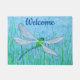 Um lápis de aquarela e cor ACEO de uma libélula verde e azul escaneando as gramíneas para presas.