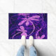 Um lindo tapete de porta de libélula em belos roxos e pinks. Adicione texto ou mensagem para fazer um presente de excelente.