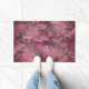 Um bonito tapete de porta colorido, rosa, com libélulas lindíssimas, de asas azuis. Personalizar com texto também!