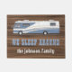 os campistas felizes de acampamento rústicos dos campistas da madeira rv personalizaram o costume que do nome de família da grão do woold nós dormimos ao redor