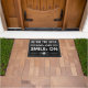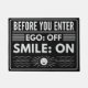 Antes de entrar em casa, deixe o fardo do dia a dia à porta. Esta porta envia uma mensagem clara, mas encantadora: ego livre, sorria! O estilo minimalista ajustado perfeitamente com as modernas áreas de entrada, e a combinação de uma simples fonte sans-serif e um símbolo alegre do sol traz calor para a sua casa. O design preto e branco pode ser adaptado individualmente às suas cores e desejos pessoais. Este tapete te colocará de bom humor bem na porta - para você, seus amigos e seus convidados.