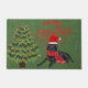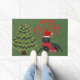 Elegant practical design of beautiful labrador on green burlap doormat. This design looks beautiful in many ways and practical in the same time. A doormat design for black labrador lovers. The text Merry Christmas is red and in beautiful script. Welcome and funny labrador wearing santa hat and Christmas scarf.