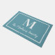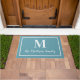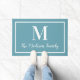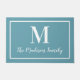 Fresque a entrada da sua casa com esta elegante porta monográfica personalizada em cores aqua / azul lacrimogêneo e branco. Nota, as cores podem ser modificadas. Personalize com o sobrenome da sua família no script e um monograma do estilo serif. Design inclui uma simples borda enquadrada.