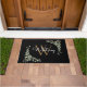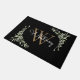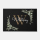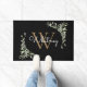 Tapete de entrada personalizado elegante com monograma floral em aquarela verde, apresentando um monograma dourado inicial com seu nome em uma fonte branca moderna em um fundo preto chique. Projetado por Thisisnotme©