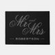 Elegante Sr. e Sra. Porormat para o casal recém-casados. Torne sua própria porta engraçada para recém-casados. Adicione sua própria mensagem de boas-vindas, nome da família, monograma, sobrenome ou citação engraçada. Clássica ideia de presente para noiva e noivo com nova casa. Fundo de cor personalizado. Tipografia de script de música em cinza ou cor personalizada. Sinal de porta personalizada modelo. Crie o seu próprio tapete de entrada, tapete para a porta da frente, entrada ou sala, local de casamento, etc. Decor/decoração personalizável para a sua casa.
