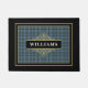 Bem-vindos convidados à sua casa com esta porta personalizável que apresenta um padrão clássico de xadrez preto e cinza no painel de janelas realçado com um elegante emblema dourado. Personalize-o com seu nome familiar para adicionar um toque de sofisticação e masculinidade à sua porta. Este design de eterno fará um presente de excelente para si mesmo, família, amigos ou novos proprietários. Modifique o nome para atender às suas necessidades e crie uma entrada quente e convidativa.