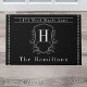 A porta personalizada elegante e clássica apresenta um creast com nome de família inicial no estilo elegante e o sobrenome e endereço de sua família. Projetado com sotaques de faixa limpos, esta porta oferece uma aparência de eterno que pode ser personalizada para corresponder à sua entrada.