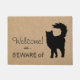 Bem-vindos aos seus convidados com este tapete rústico engraçado. Aplaude seus visitantes com uma Boas-vindas, mas também um aviso para Cuidado com o Gato! Pegue um para você mesmo, ou dê como presente para a mãe do gato, pai de gato, ou amante de gato em sua vida. Excelente para o aquecimento doméstico, nova casa, novo formando, Dia de as mães, Dia de os pais, Feriados de Natal, Aniversário, ou só porque.
