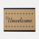 Este tapete de boas-vindas engraçado diz exatamente o oposto do que um visitante da sua casa esperaria. Escrito em caracteres elegantes e cursivos em texto preto é a palavra Inbem-vindo, deixando seus hóspedes saberem que você teria preferencialmentes que eles vão embora. Esta porta decorativa para a sua varanda ou entrada é uma peça de conversa de excelente para amigos e familiares. Significado para pessoas que apreciam sarcasmo e humor grosseiro, este tapete maldito faz um dom perfeito para o lar ou é presente para casais recém-casados. Este tapete de entrada também seria adequado para uma sala de dormitório ou uma casa de fraternidade.