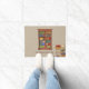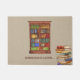 Morador de livros divertidos com uma estante de aquarela cheia de livros antigos, uma pilha de livros antigos, fundo falso burlap, e as palavras editáveis, VOLTEM MAIS TARDE. Disponível em duas dimensões. Mete-se ou dê esta porta personalizável para o seu bibliófilo/worm favorito. Do 369MeuNome. #FunnyDoormat #BookLover