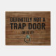 Esteira bem-vinda engraçada que caracteriza um fundo de madeira impresso, o puxador da porta, e o provérbio "DEFINIDA NÃO UMA PORTA de ARMADILHA….OU É?"