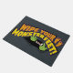 Bem-vindos a convidados deste Halloween com esta divertida e assustadora porta-maldita que apresenta um olho de monstro malicioso a espreitar de baixo. A tipografia divertida inclui uma frase engraçada que fará todos os hóspedes rirem antes de entrar na casa. Adicione um toque de charme de Halloween à sua entrada enquanto mantém sua casa limpa de todas aquelas pegadas assustadoras. Perfeito como decoração para truques ou tratadores e hóspedes de festas.