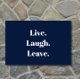 Finalmente, um ditado inspirador para os introvertidos entre nós. "Viva. Ria. "Sair" proclama esta porta humorística, que é para introvertidos, antissociais, e socialmente constrangedores, que recebem convidados com um pouco de relutância e talvez até alguma ansiedade. Uma tipografia branca simples e moderna num fundo azul clássico de marinho. Inesperado, peculiar e um pouco sarcástico, esta porta engraçada é perfeita para aqueles que apreciam o humor escuro e seco e não têm medo de compartilhá-lo com seus visitantes (que esperam que saiam em breve).