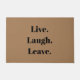Finalmente, um ditado inspirador para os introvertidos entre nós. "Viva. Ria. "Sair" proclama esta porta humorística, que é para introvertidos, antissociais, e socialmente constrangedores, que recebem convidados com um pouco de relutância e talvez até alguma ansiedade. Uma tipografia negra simples e moderna num fundo clássico de cor de coma. Inesperado, peculiar e um pouco sarcástico, esta porta engraçada é perfeita para aqueles que apreciam o humor escuro e seco e não têm medo de compartilhá-lo com seus visitantes (que esperam que saiam em breve).