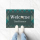 Elevem sua entrada com nossa excitante turquesa vibrante, e argyle design de cinza personalizada, com uma bola de golfe divertida em uma árvore azul substituindo o O em Bem-vindo. Vestir sua entrada com um tapete de boas-vindas. O presente perfeito para o ávido golfista, ou clube do campo de golfe do 19º buraco.