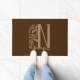 Tapete Entrada Elegante Monograma N Inicial em Castanho