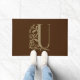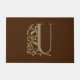 Tapete Entrada Elegante Monograma U Inicial em Castanho