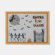 Dê um pouco de susto aos seus visitantes nesta temporada de Halloween com este tapete de porta de Spooky Halloween. Há um portão de ornamentado com um gato preto e uma abóbora laranja sentados sobre os pilares do portão. Há um grupo de 4 esqueletos dançando, uma silhueta de bruxas voando através da lua e muitos morcegos voando sobre isso. O fundo é cinza leve com teias brancas de aranha. A tipografia diz "ENTER if you DARE!" e o ponto no i e a letra do seu, são feitos de cabeças de esqueleto! Há uma borda laranja com uma faixa preta ao redor da borda.