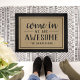 Adicione um toque de boas-vindas à sua porta da frente com este tapete personalizado giro e engraçado em preto clássico e bronzeado. "Entre, somos incríveis" aparece no centro, com seu nome familiar embaixo.