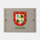 Apelido espanhol Acevado Matriz Histórica Familiar com lobos e galhos sagrados em fundo de cóblias. O sobrenome espanhol Acevado foi derivado da antiga palavra espanhola Azevo, que significa Holly. Seu nome é espanhol? Podemos pesquisar o seu nome e fornecer um tapete de porta com os seus braços familiares históricos aqui no Zazzle! Apenas nos pergunte. Excelente para mostrar sua herança familiar ou dar como presente.