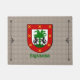 Apelido espanhol Espinosa Histórica Blindagem Mat apresentando uma árvore verde flanqueada por dois lobos negros em um cenário branco no estilo de uma cobblestona. O sobrenome espanhol Espinosa significa morador num arbusto espinhoso ou próximo dele. Seu nome é espanhol? Podemos pesquisar o seu nome para você e fornecer um tapete de porta com braços familiares históricos aqui no Zazzle! Apenas nos pergunte. Excelente para mostrar sua herança familiar ou dar como presente.