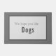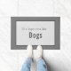 Design de porta moderna e nítida apresenta texto centrado "Esperamos que você goste de DOGS" em cinzas de fundo