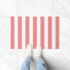 Decorra a porta com este tapete de porta listrado moderno. Design de padrão de listras verticais em linda cor rosa vermelha coral. Decoração moderna do padrão striped.