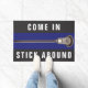 Decoração engraçada de lacrosse para jogadores, treinadores e fãs de equipes, com um lax stick em fundo azul.