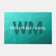 Monograma Personalize com seu nome e inicial personalizados. Legal porta simples moderna para a família ou qualquer um. Malha geométrica triangular com gradiente verde verde-azul-turquesa-claro.