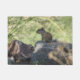 Uma foto de um esquilo de rocha do bebê que olha para fora sobre seu mundo