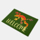 Esteira bem-vinda com ilustração australiana original da arte dos lagartos bonitos coloridos do geco pelo artista Sacha Grossel que caracteriza estes répteis bonitos em um fundo natural simples do verde do eco. Colorido e vibrante. Aperfeiçoe para um amante da natureza ou dos animais selvagens.