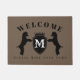Esteira de porta bonito que caracteriza uma ilustração da silhueta da caniche (alemão cortado). Cor customizável e texto do fundo. Presente perfeito para o amante do cão ou o proprietário da caniche.