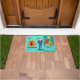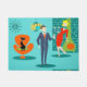 Mel, eu sou casa! Esta esteira de porta retro do casal dos desenhos animados da era espacial tê-lo-á sentir invejoso do casal dos desenhos animados em um travesseiro decorativo! As características de design um fundo de turquesa com tijolos da cerceta e uma verde azeitona, lareira do cone. Um gato lustroso, preto está sentando-se em uma cadeira alaranjada lustrosa. Há uma cerceta, pulso de disparo de parede do starburst e uma lâmpada de pendente de dois níveis nas máscaras de amarelo, do azul e do preto. Parte dianteira e centro, há homem de negócios um distinto, de martini-swilling em um terno azul e um laço alaranjado. A seu lado, sua notícia bombástica loura de uma esposa do troféu está vestindo um vestido vermelho do wiggle e está guardarando uma bandeja de martinis. Va-va-va-voom!