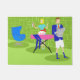 Esta esteira de porta retro do casal dos desenhos animados em casa está quente crepitante! Caracteriza um casal dos anos 50 que obtem pronto para o dia. Estão estando em uma sala verde vibrante com uma parede de tijolo verde atrás deles. Ao lado é uma cadeira azul brilhante do ovo. Estando atrás de uma tábua de passar a ferro do rosa quente, uma esposa bonito, loura está guardarando um ferro. Está vestindo um vestido simples da casa de turquesa que olhe apropriado para uma coroação. Em torno de sua cintura, são um flouncy, um avental branco com uma faixa vermelha e uns acentos. Sua turquesa calça combina perfeitamente seu vestido. Naturalmente fazem! O marido da mulher está estando fora ao lado, lendo um jornal. Está vestindo uma luz - a camisa de vestido azul, o laço alaranjado e os azuis marinhos serem a jaqueta. Olharia toda pronto para o trabalho se suas calças de harmonização dos azuis marinhos não foram lançadas sobre a tábua de passar a ferro. Não pode muito bem ir a seu escritório onde executará as tarefas misteriosas que ninguém compreende bastante em seus shorts brancos do pugilista. Oh, meu! Que desordem doido seguiria se ousou tentar aquele!